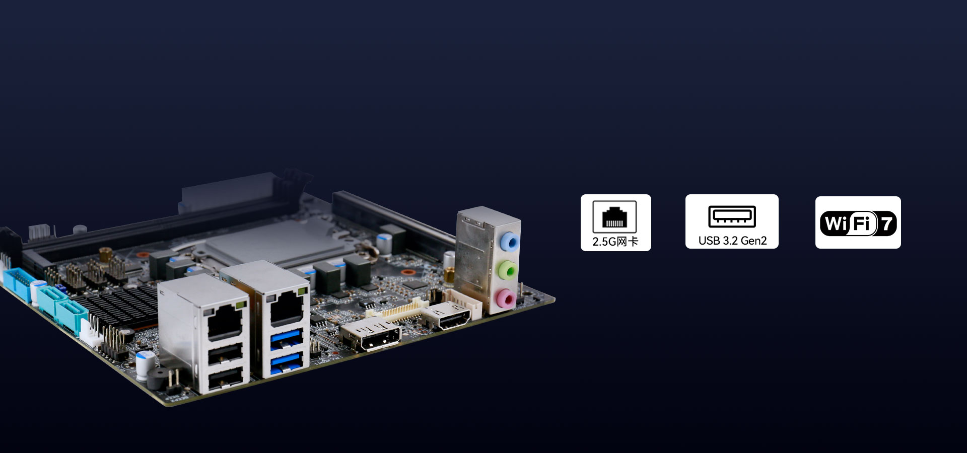 主板配备2 x USB3.2 Gen2,2 x USB2.0,内部还有2 × USB3.2 Gen1插针,2 x USB2.0插针,采用 Realtek RTL8111H1千兆网卡芯片及Intel®I225-V 2.5G网卡芯片,确保高速稳定的有线网络连接。