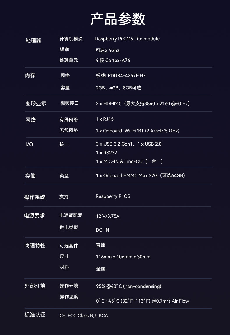 DN24与DN25分别配备四核Cortex-A72的树莓派CM4模块、四核Cortex-A76树莓派CM5模块,双通道DDR4内存,强大的处理能力可轻松应对高清视频播放、实时数据处理等复杂任务。